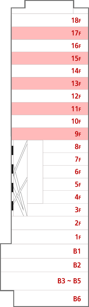 9F,11F,13F,15F,17F 1, 2, 3, B1F : ¸®Å×ÀÏ ÀÓ´ë 18~4F : ¾÷¹«¿ë ÀÓ´ë |